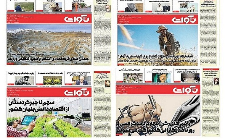 به گزارش خبرنگار ما، نزدیک به یک دهه (بیش از۴۳۰ شماره) همراه و همگام با مطالبات و صدای جامعه “آوات” منتشر شده است. در آخرین شماره آوات مطالبی همچون: نازنینی تو ولی در حد خویش! از سلیمان الله مرادی/ شعبدهبازی رئیس جهاد کشاورزی کردستان با آمار! از فرید کریمی/از بیابان های بدون تورم اصفهان تا معادن تورم زا کردستان! از فرشاد محمدی/ از میدان انقلاب تا دانشگاههای سئول؛ دختران و پسران دانشجوی کره ای در سنندج به دنبال چه بودند؟ از بهنام امیری/خوشا به حالت استاد شجریان! از احسان محمدی/ توسعه کشور و مناطقی مانند کردستان مستلزم استفاده از توان نخبگان است از رامتین تاشان/ ڕێگە هەوراز و نشێوەکانی هەمزاتۆڤ از ڕەمزی میرەکانی/ ئەگەر مامە کەریمم پارلمانتار بوایە له کوورش موحەممەدی/ شێوەی ڕاستەقینەی کۆمەڵگا له عیسا ئەحمەدی/حضور تیم بسکتبال کردستان در سوپر لیگ ایران پس از ۱۸ سال/ تخصیص تسهیلات قرض الحسنه برای مستمریبگیران صندوق بیمه اجتماعی روستائیان/ مقابله با ارازل و اوباش از اولویتهای نیروی انتظامی/ انتصاب کشتی گیر پیشکسوت کردستانی به عنوان مدیرکل امور استانهای وزارت ورزش/ برگزاری نخستین دوره رسمی آموزش زبان کُردی برای روزنامەنگاران و فعالان رسانەای کردستان….در آن به چاپ رسیده است.