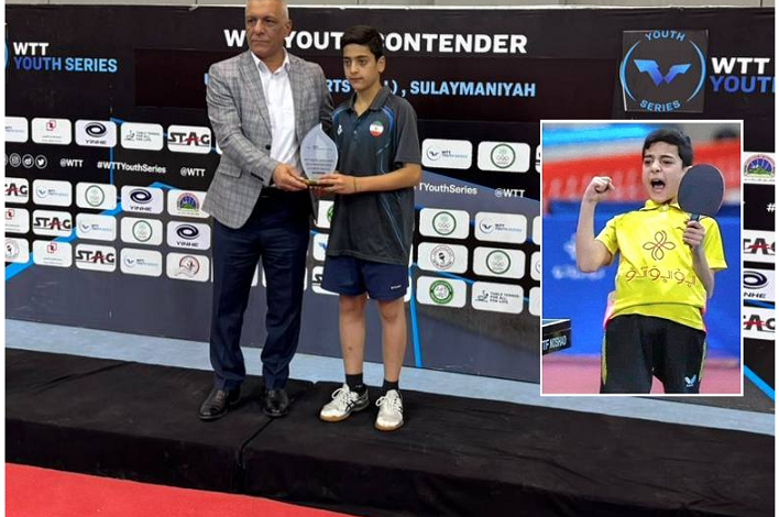 امیررضا خسروی، پینگپنگباز نونهال کشورمان، موفق شد مدال برنز رقابتهای زیر ۱۳ سال کانتندر جوانان سلیمانیه را کسب کند.
